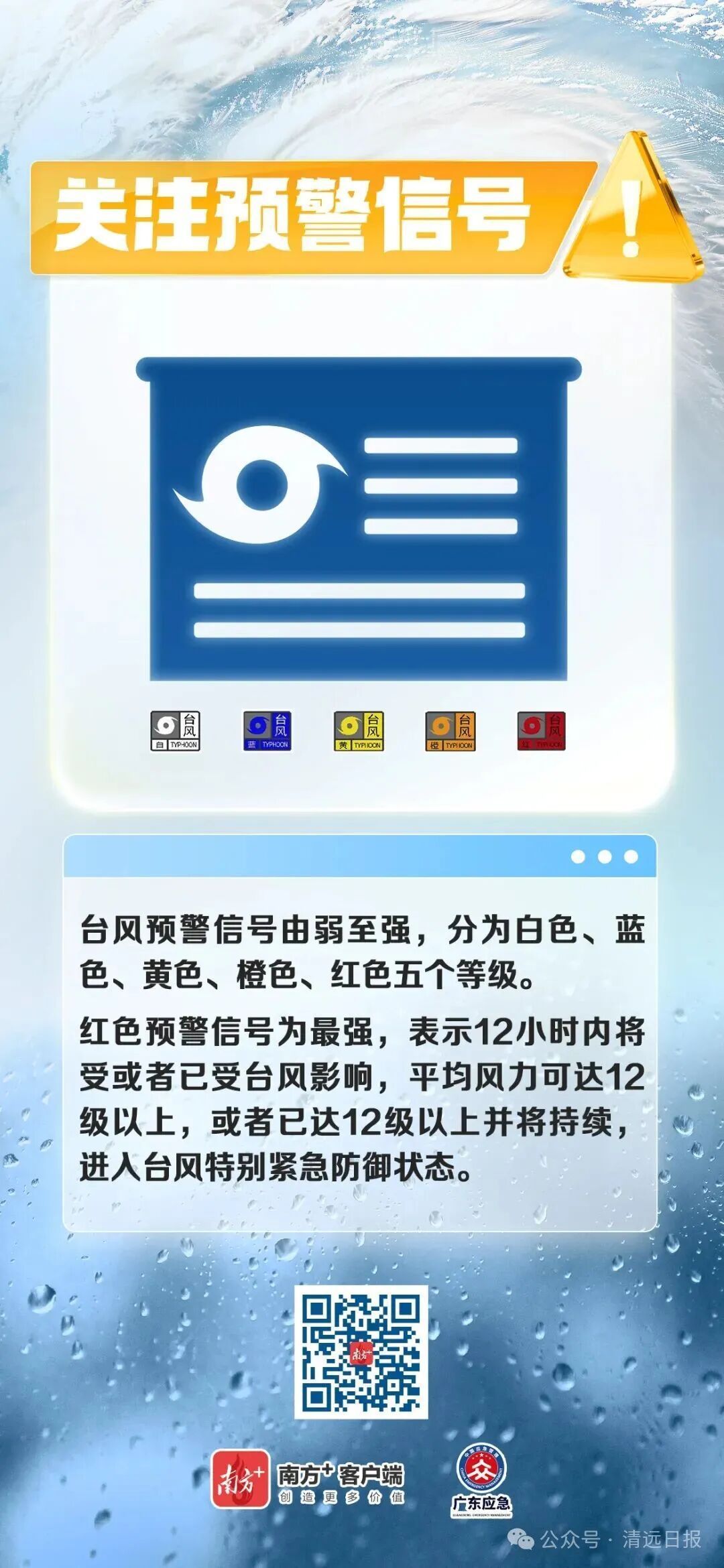 清远市气象台于9月23日08时16分将清城区台风白色预警信号升级为蓝色,预计傍晚前后升级台风黄色预警;