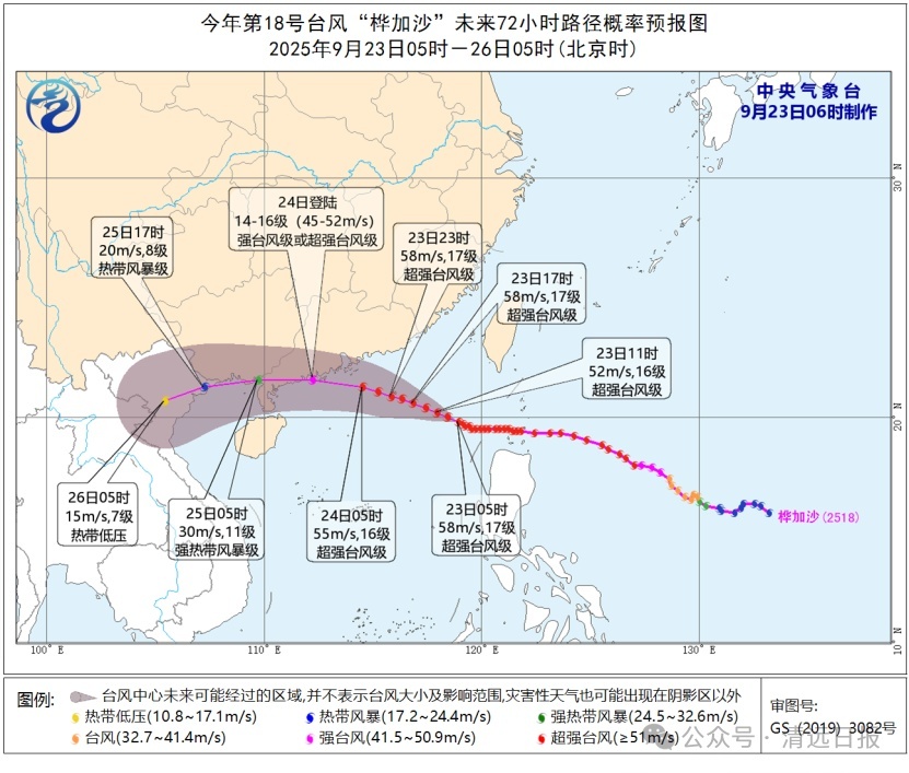 佛冈县气象台9月23日08时24分将台风白色预警信号升级为蓝色;