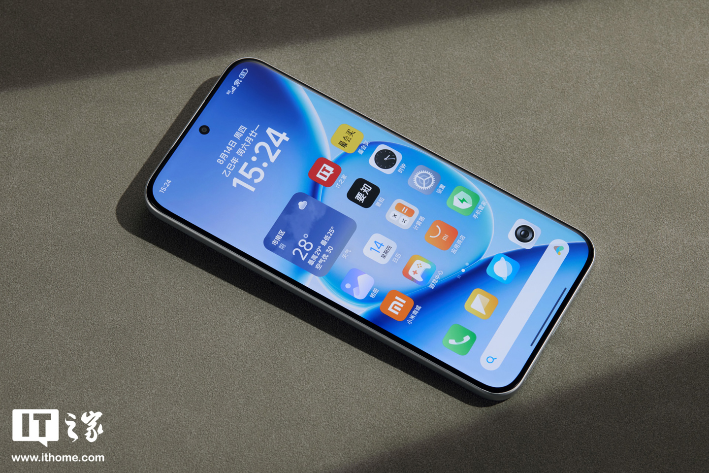 手机的正面为 6.83 英寸的屏幕,覆盖小米龙晶玻璃,等深四曲面,顶部为打孔前置摄像头,优雅大 R 角设计,R 角比例接近机身 1/3 宽,2.03mm 窄下巴相比上代收窄 14.3%,屏幕点亮时还是有一定的视觉冲击力的。