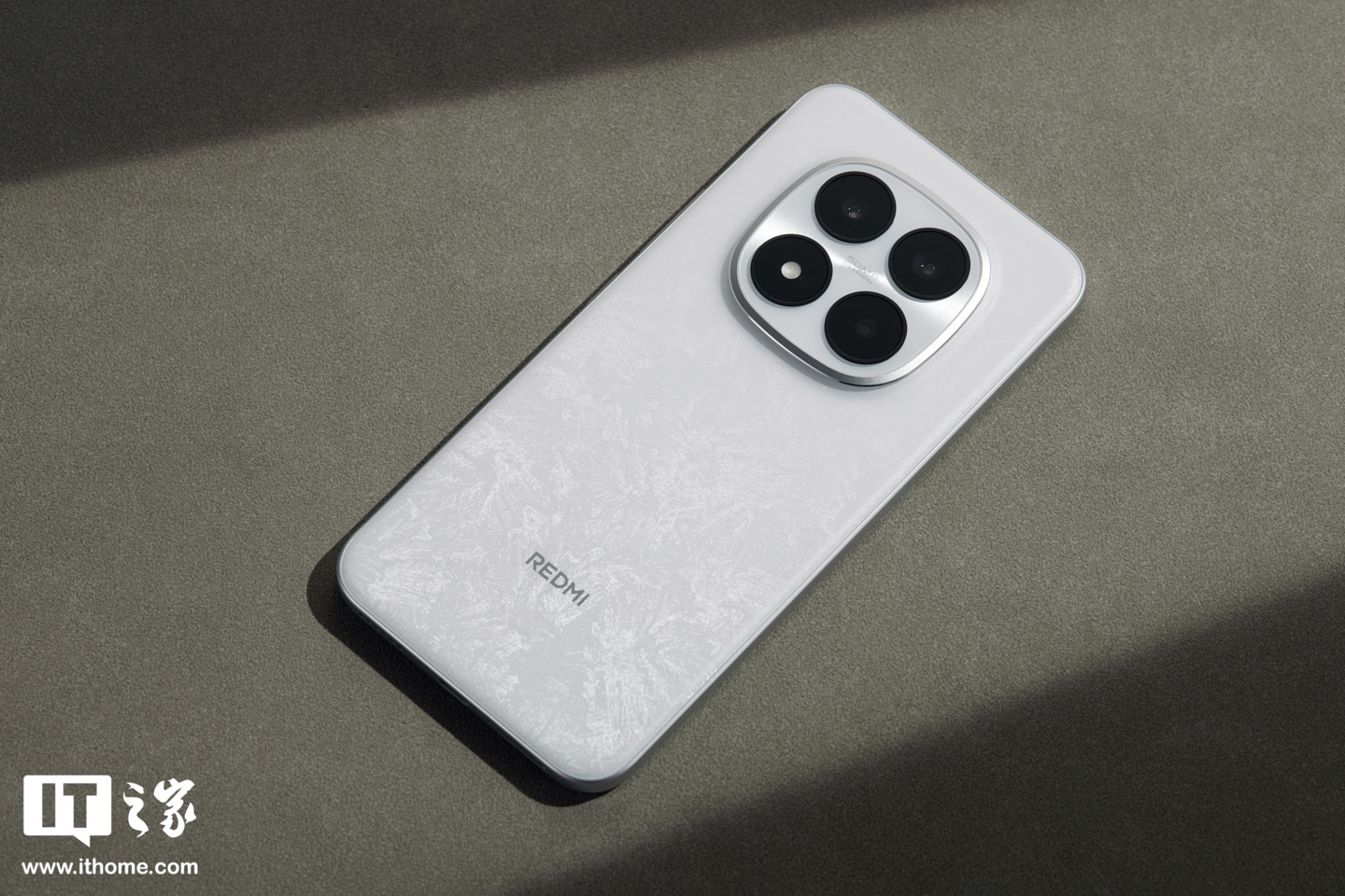 色彩方面,IT之家这次拿到的是雪松白的配色,超韧玻纤背板下做了类似雪花纹理的设计,搭配调得很瓷实的白色,视觉上呈现一种雪松冰晶的观感,在不同的光线角度下纹理细节也不同,有一种梦幻的感觉。