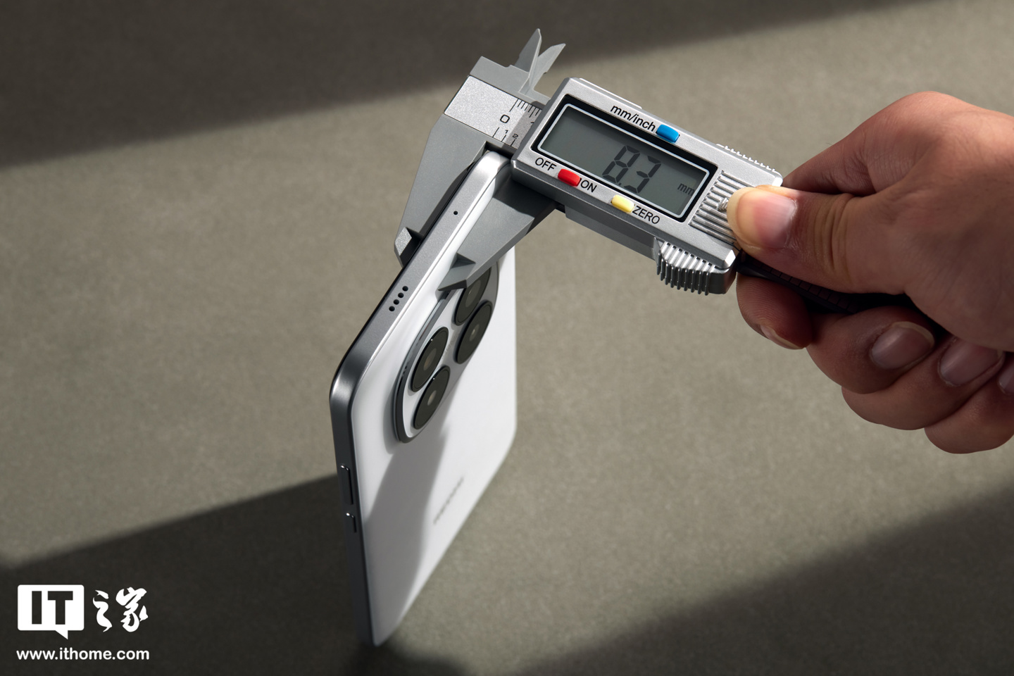 机身厚度方面,IT之家实测 REDMI Note 15 Pro + 机身厚度为 8.3mm(官方数据为 8.08mm),重量实测为 212.1g(官方数据位 210.8g)。此外,根据官方数据,雪松白版本 REDMI Note 15 Pro + 的机身长和宽分别为 163.34×78.31mm。